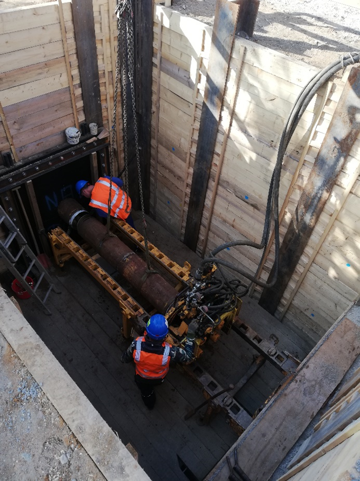 Bestandteile der weiteren Planung und Bauausführung waren die Querungen einer Bundes- und einer Kreisstraße in geschlossener Bauweise mittels Schutzrohren aus Stahlbeton der Nennweite DN 800.