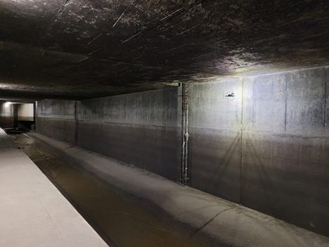 Die Kontrolle der Bauwerksdecke ist selbst hinter den Spülkippen möglich Die Kontrolle der Bauwerksdecke ist selbst hinter den Spülkippen möglich